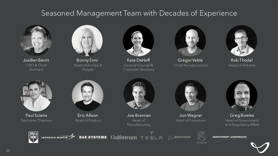 Seasoned Management Team with Decades of Experience JoeBen Bevirt Bonny Simi Kate DeHoff Gregor Veble Rob Thodal CEO & Chief Head of Air Ops & General Counsel & Chief Aerodynamicist Head of Airframe Architect People Corporate Secretary Paul Sciarra Eric Allison Joe Brennan Jon Wagner Greg Bowles Executive Chairman Head of Product Head of Head of Powertrain Head of Government Manufacturing and Regulatory Affairs 25Seasoned Management Team with Decades of Experience JoeBen Bevirt Bonny Simi Kate DeHoff Gregor Veble Rob Thodal CEO & Chief Head of Air Ops & General Counsel & Chief Aerodynamicist Head of Airframe Architect People Corporate Secretary Paul Sciarra Eric Allison Joe Brennan Jon Wagner Greg Bowles Executive Chairman Head of Product Head of Head of Powertrain Head of Government Manufacturing and Regulatory Affairs 25