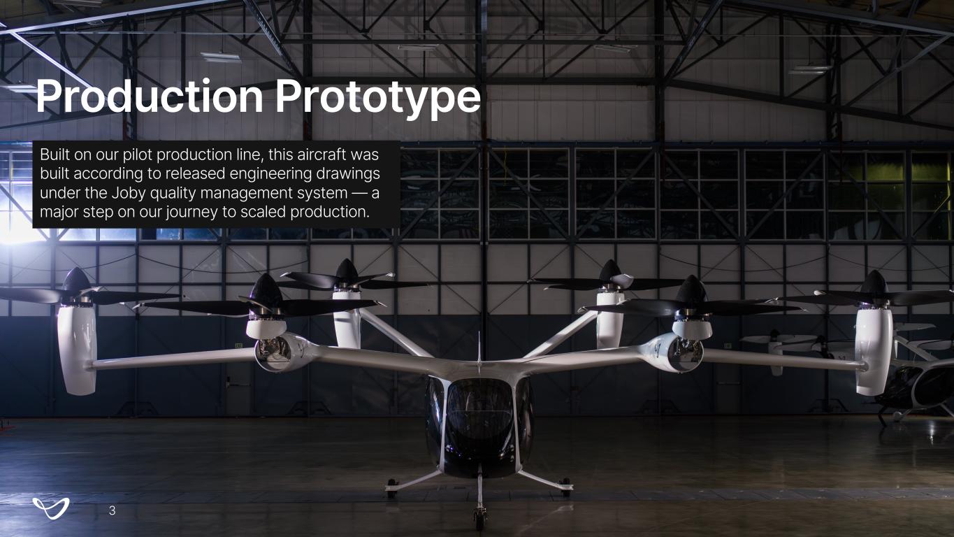 Built on our pilot production line, this aircraft was built according to released engineering drawings under the Joby quality management system — a major step on our journey to scaled production. Production Prototype 3