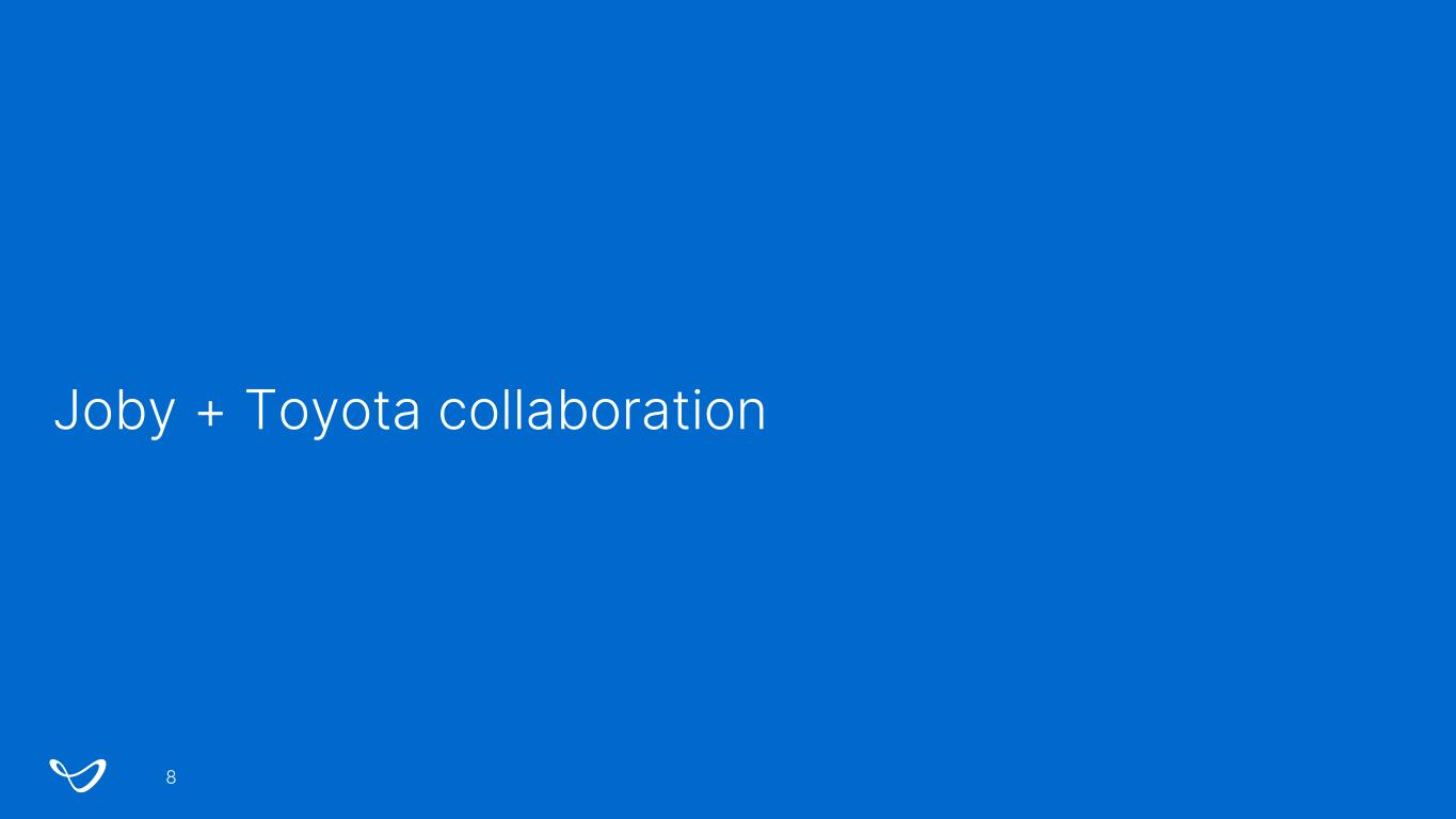 Close collaboration between Joby and long-time partner and investor Toyota supported the development of Joby’s aircraft production line. Toyota has invested ~$400M in Joby since 2019. Long-standing partnership 9
