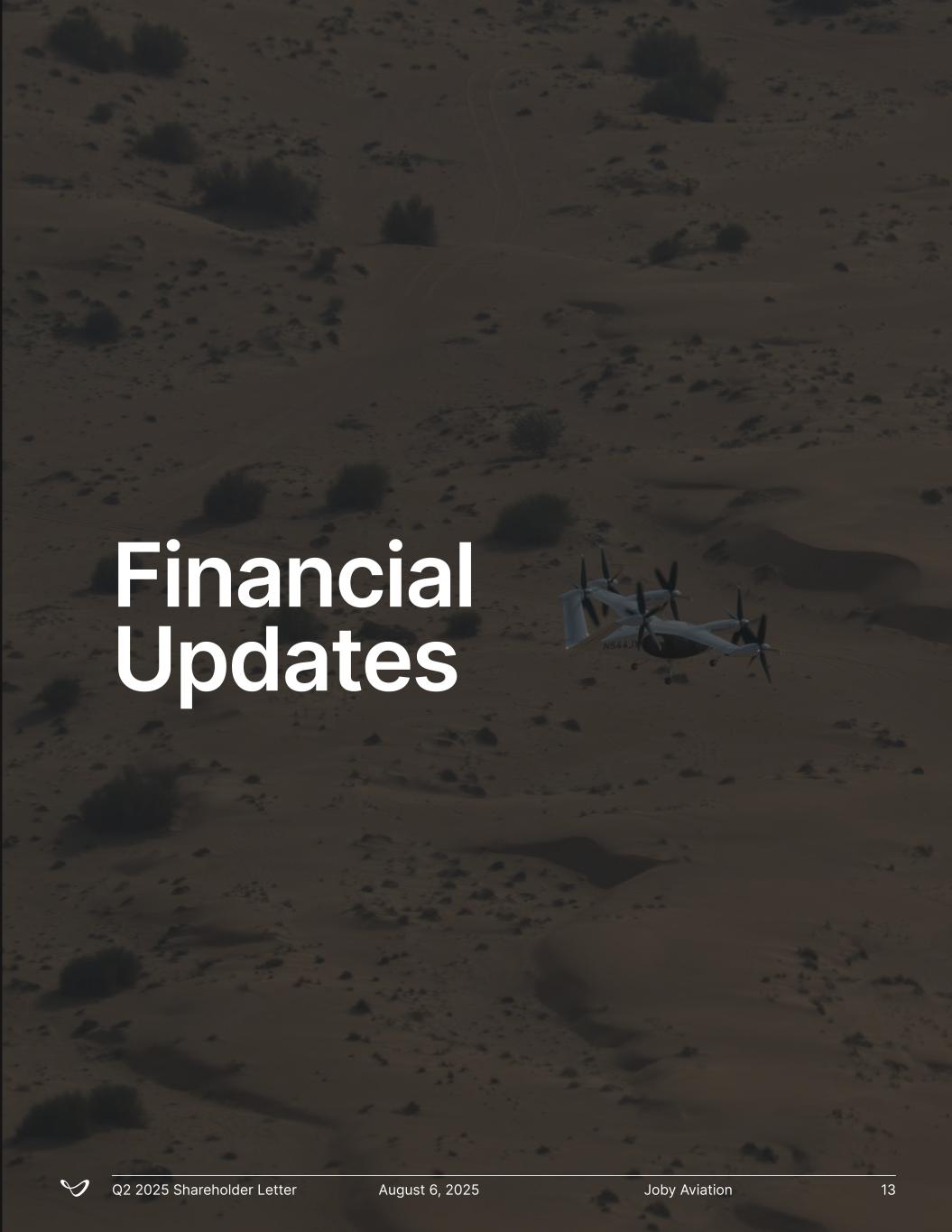Joby AviationQ2 2025 Shareholder Letter August 6, 2025 13 Financial Updates